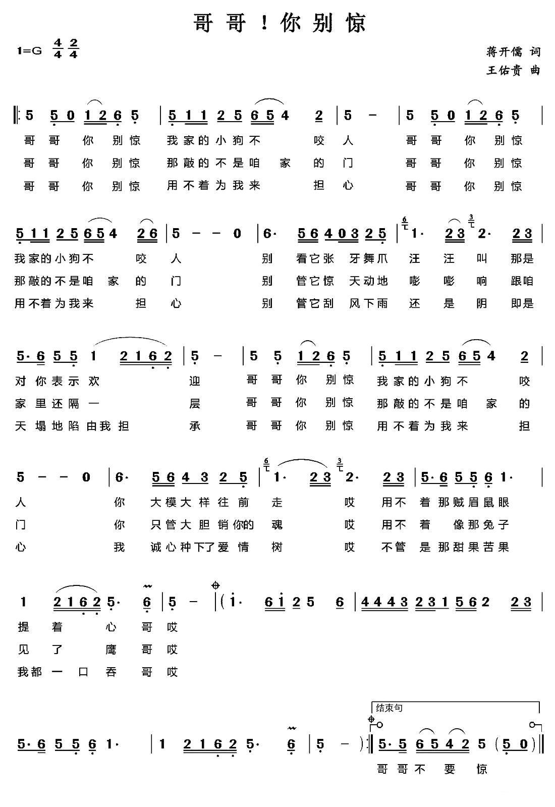 《哥哥!你别惊》简谱 王佑贵