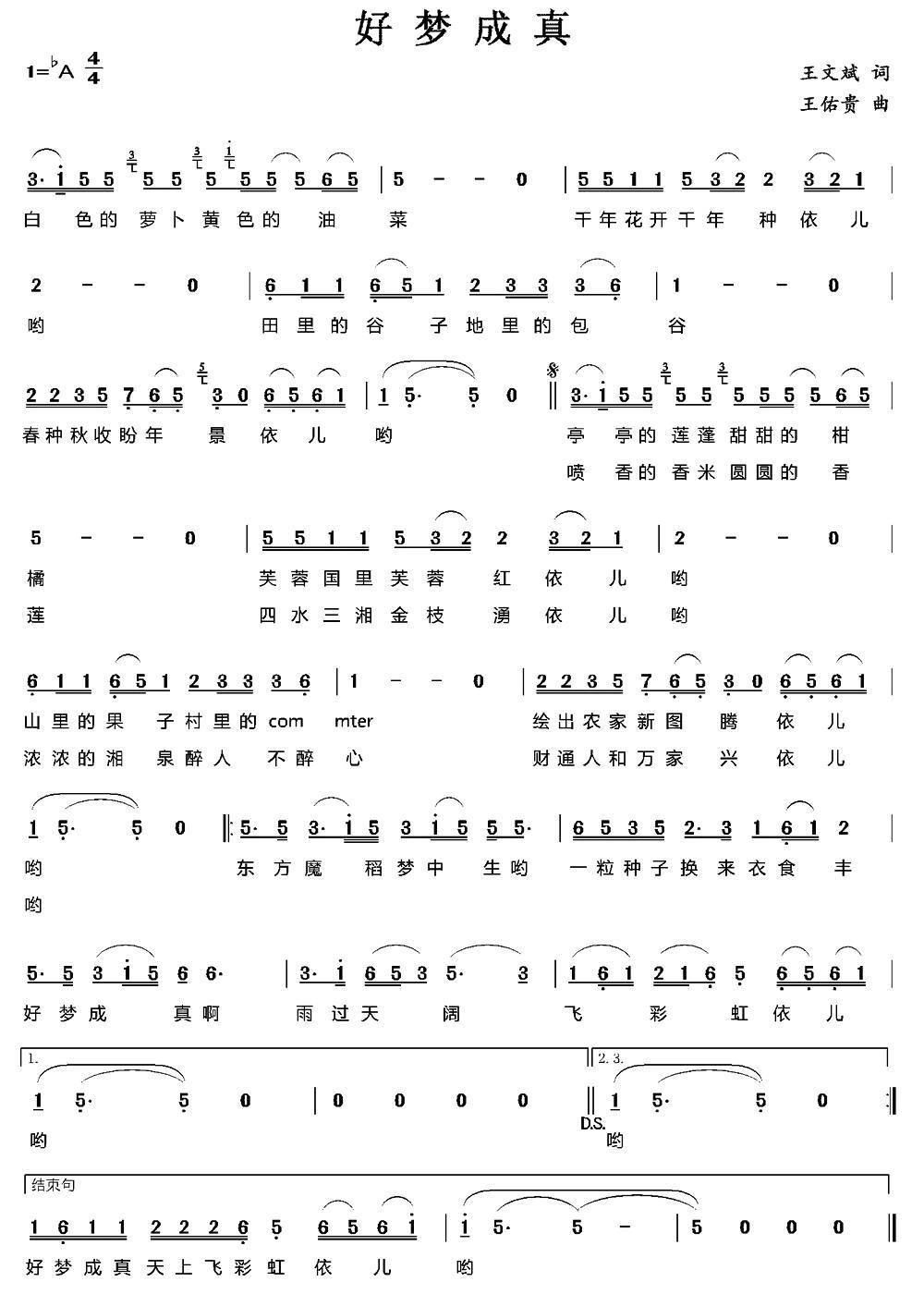 《好梦成真》简谱 王佑贵