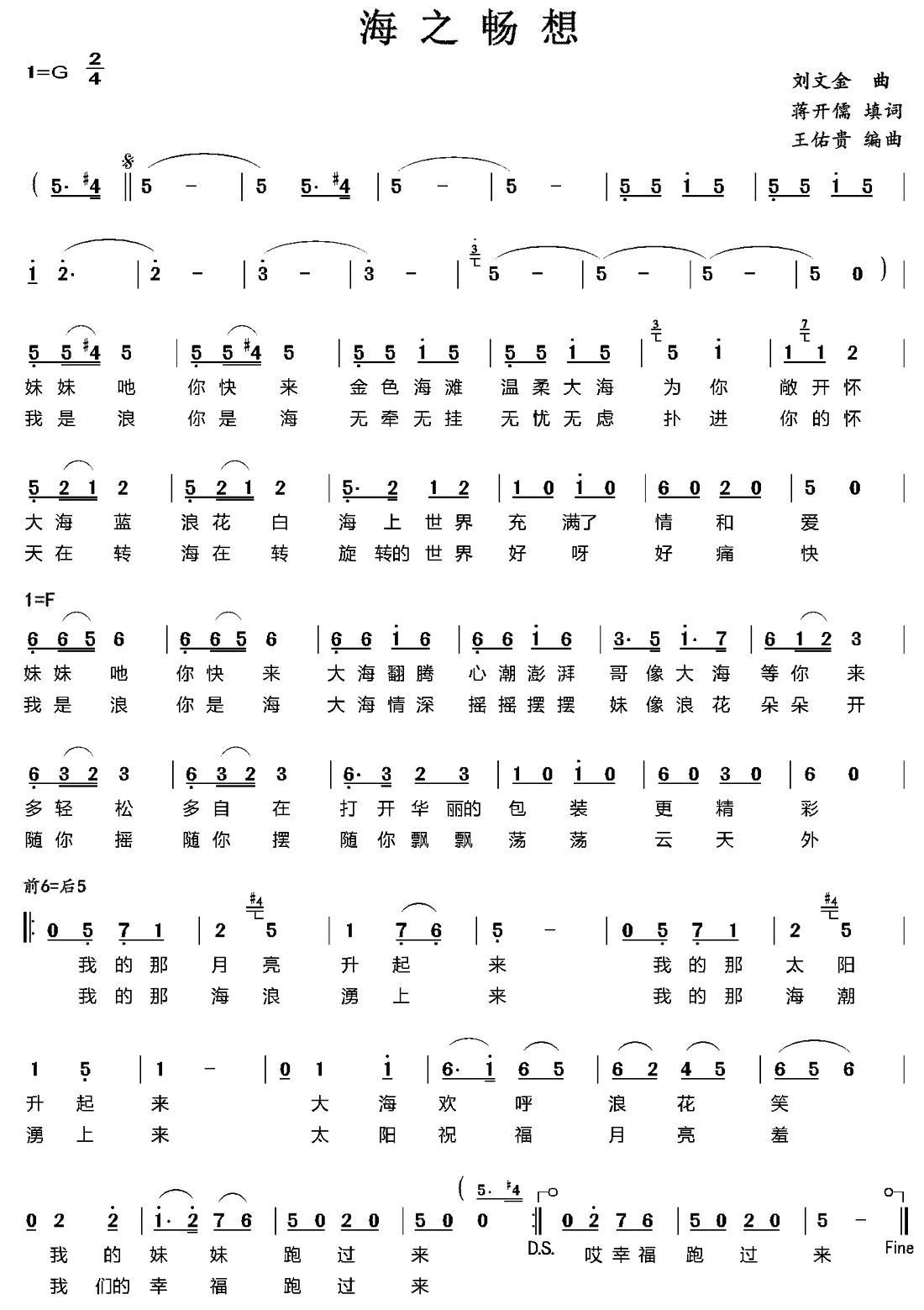 《海之畅想》简谱 刘文金曲、王佑贵编曲