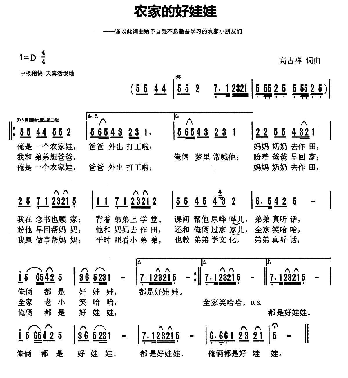 《农家的好娃娃》简谱 天津高占祥