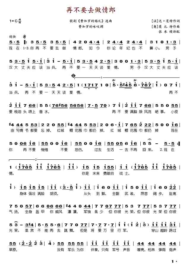 《你再不要去做情郎(张永模译配)》简谱 林俊卿