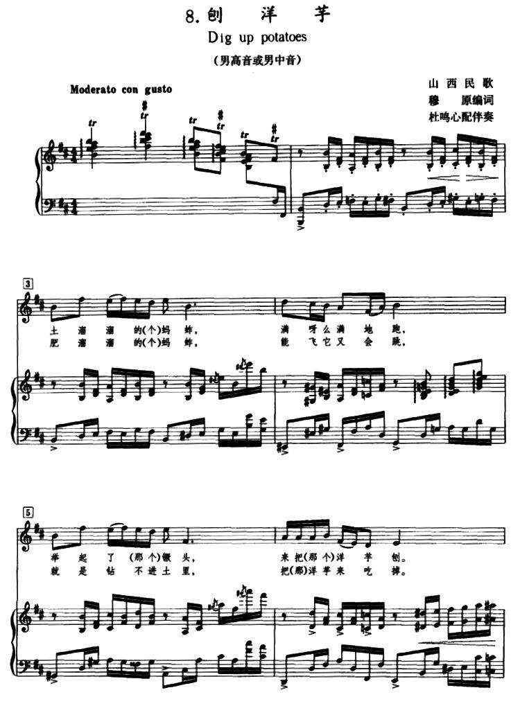《刨洋芋(山西民歌、正谱)》简谱 山西民歌、杜鸣心配伴奏