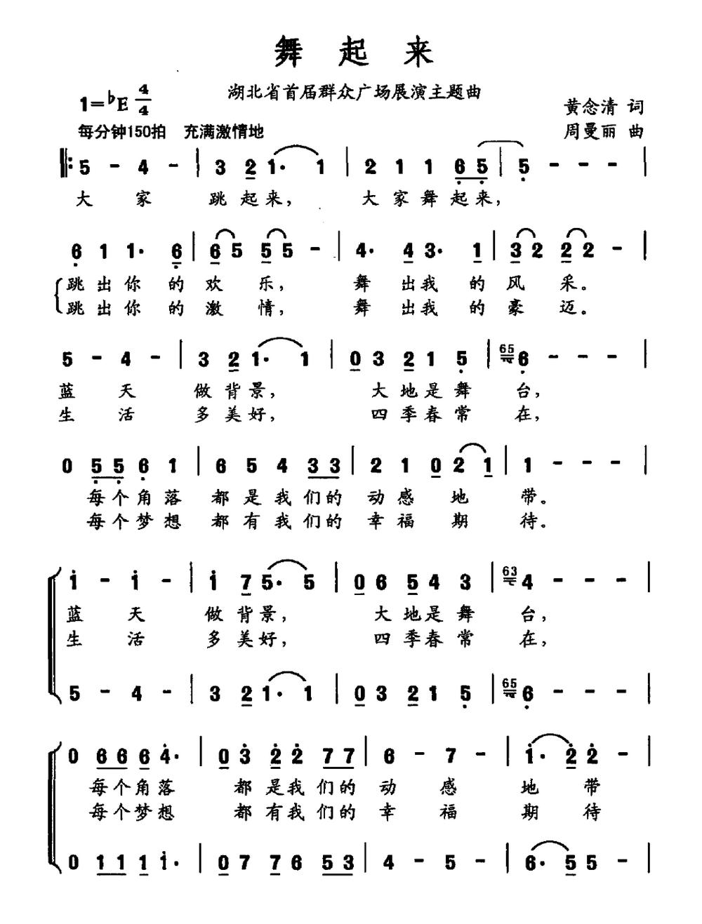 《舞起来(湖北首届群众广场舞展演主题曲)》简谱 周曼丽