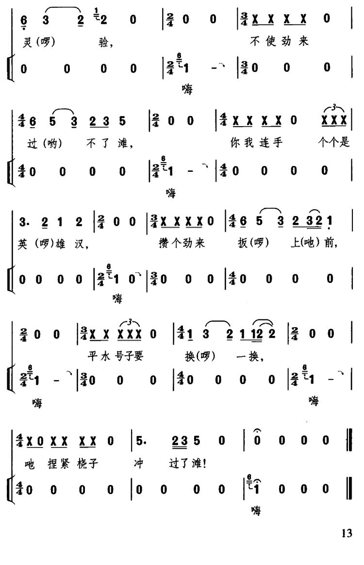 《川江船夫号子(四川民歌、杜宇整理版)》简谱 四川民歌、陶鹏采编作词、杜宇整理第4张