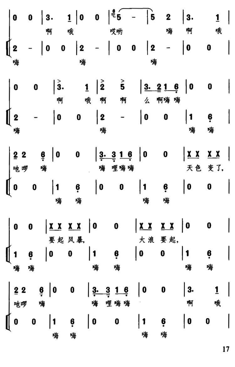 《川江船夫号子(四川民歌、杜宇整理版)》简谱 四川民歌、陶鹏采编作词、杜宇整理第8张
