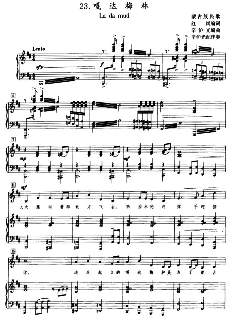 《嘎达梅林(正谱、辛沪光配伴奏版)》简谱 蒙古族民歌 辛沪光编曲配伴奏