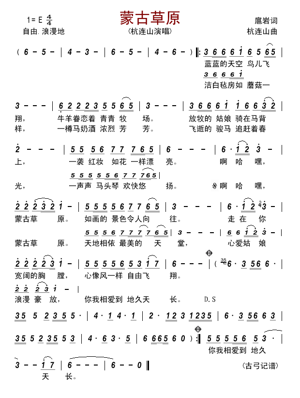 诺文吉娅 (正谱)-蒙古族民歌 赵宋光配伴奏