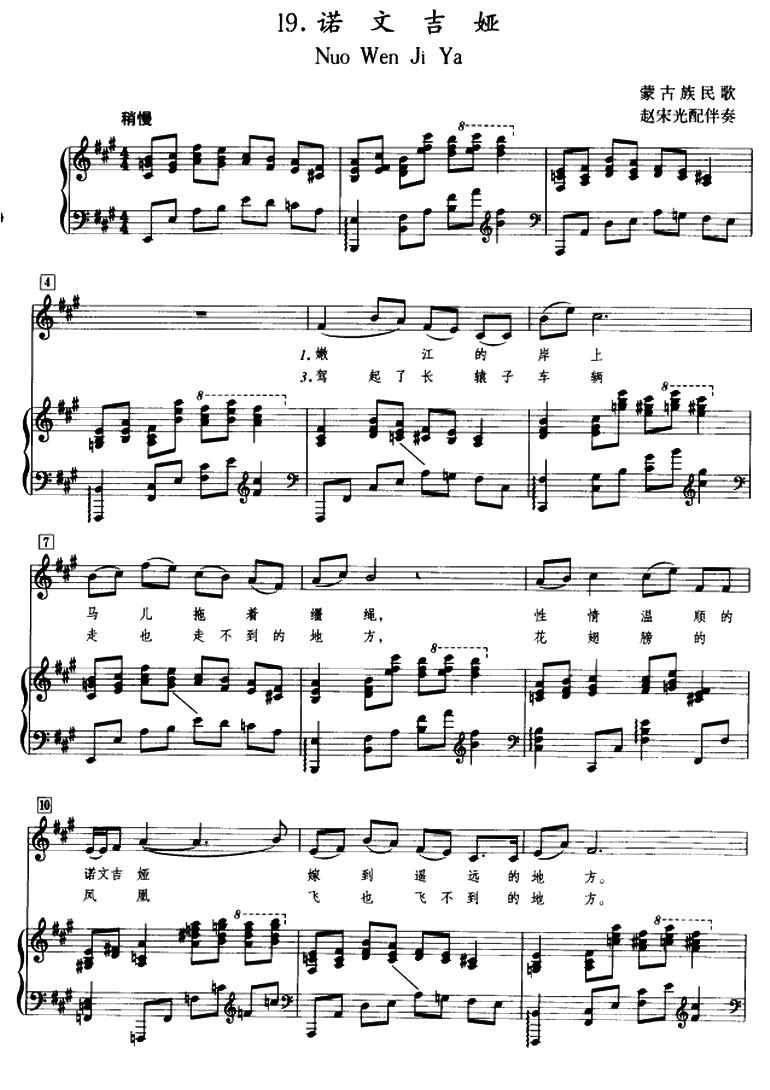 《诺文吉娅 (正谱)》简谱 蒙古族民歌 赵宋光配伴奏