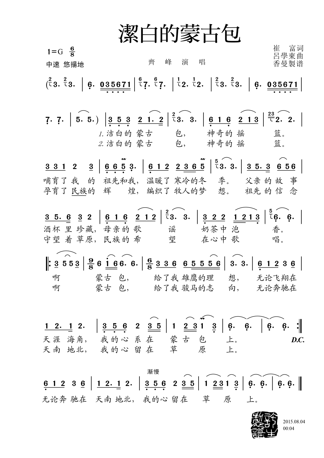 牧歌(正谱)(蒙古族民歌、冰河编曲配伴奏)