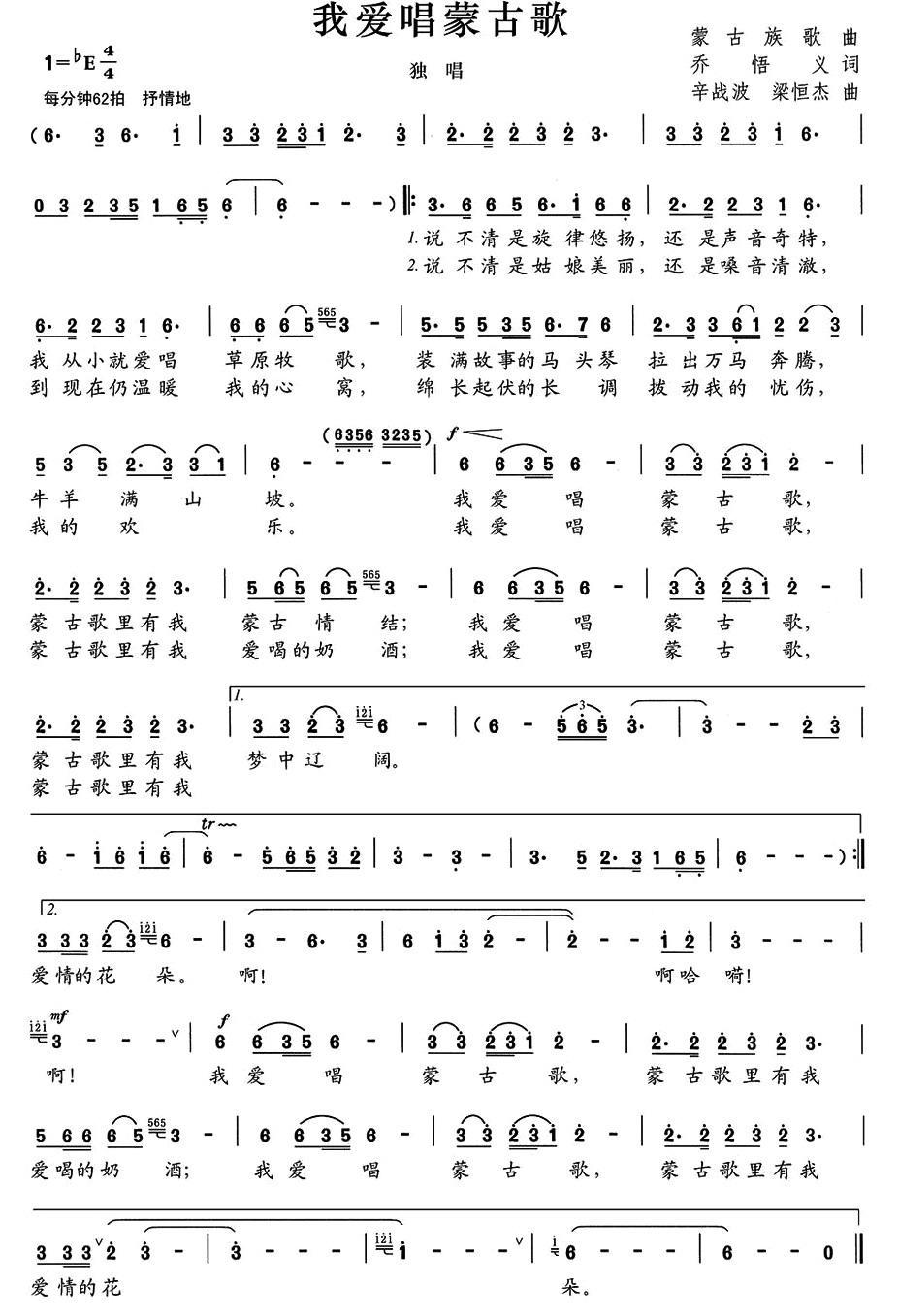 《我爱唱蒙古歌》简谱 辛战波 梁恒杰