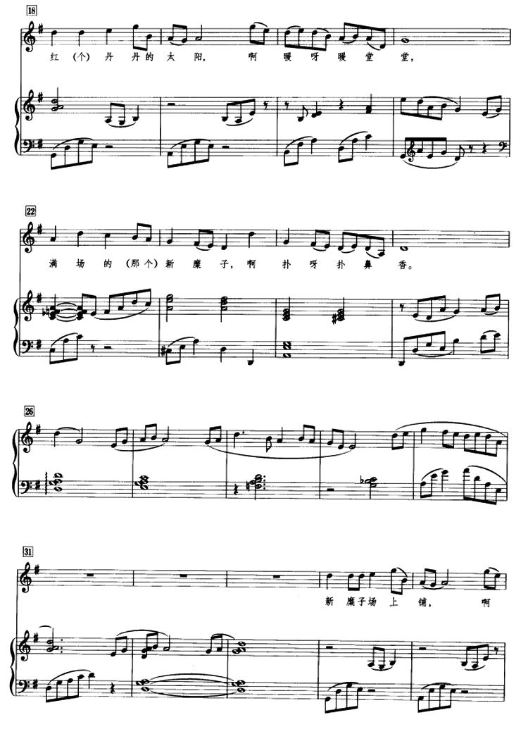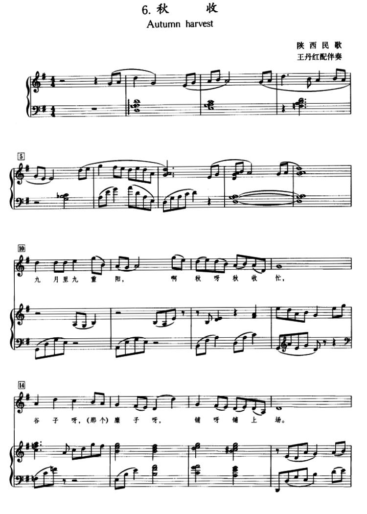 《秋收(正谱)》简谱 陕西民歌、王丹红配伴奏