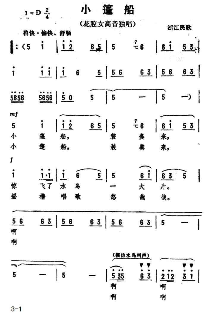 《小篷船 (浙江民歌、劫夫编曲)》简谱