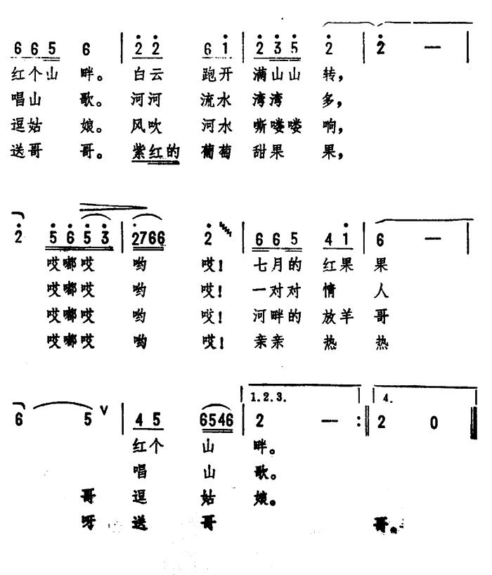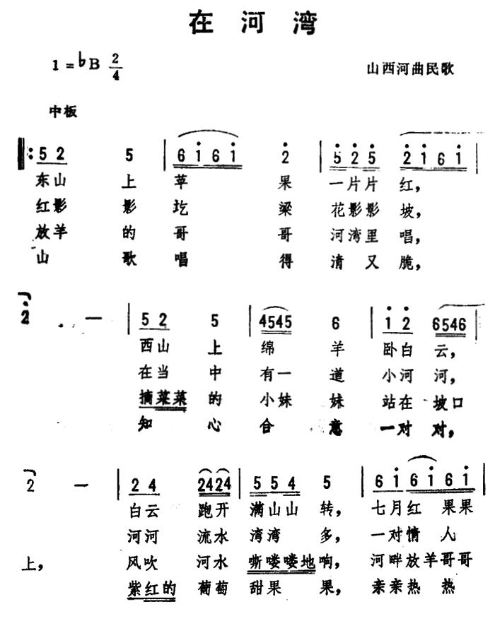 《在河湾 (山西河曲民歌、劫夫编曲)》简谱