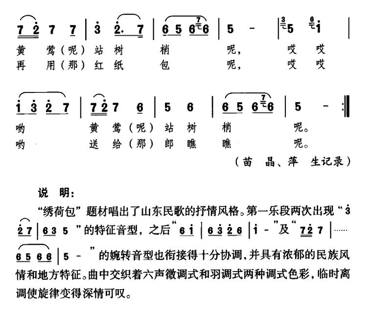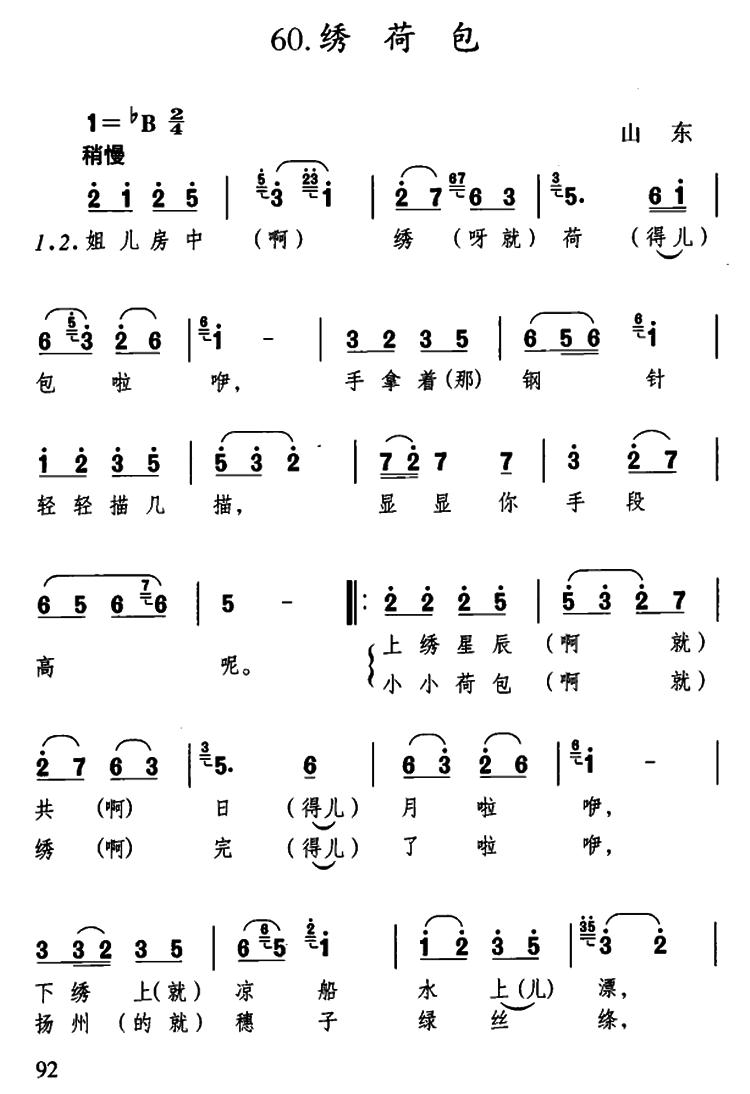 《绣荷包(山东民歌)》简谱