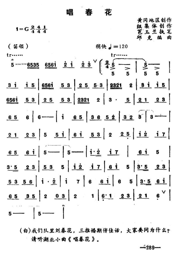 《[湖北小曲]唱春花(再版)》简谱 集体创作、苞玉兰执笔、邱克编曲、