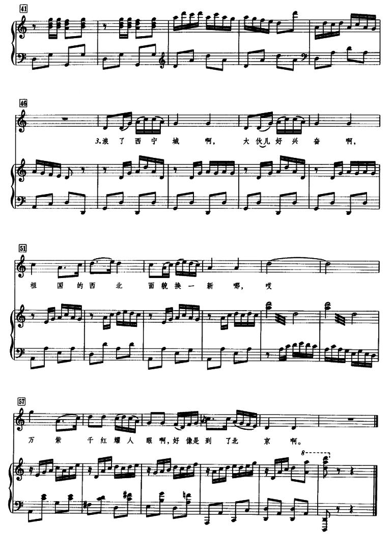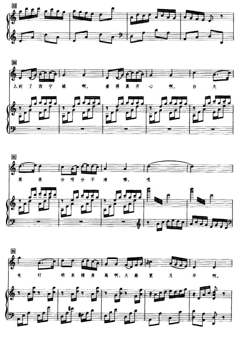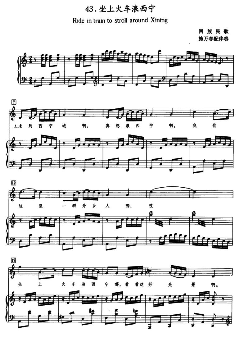 《坐上火车浪西宁(正谱)》简谱 回族民歌 施万春配伴奏