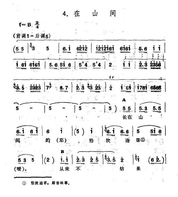 《在山间(新疆伊犁 维吾尔民歌 第十二套《小莱龙》)》简谱