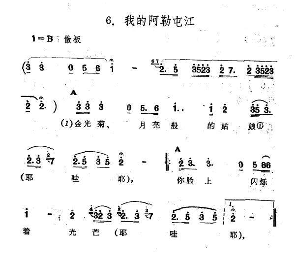 《我的阿勒屯江(新疆伊犁 维吾尔民歌 第十二套《小莱龙》)》简谱