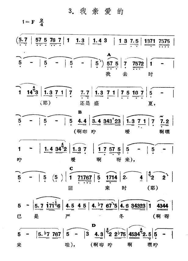 《我亲爱的(新疆伊犁 维吾尔民歌 第九套《我那戴花的情人》)》简谱