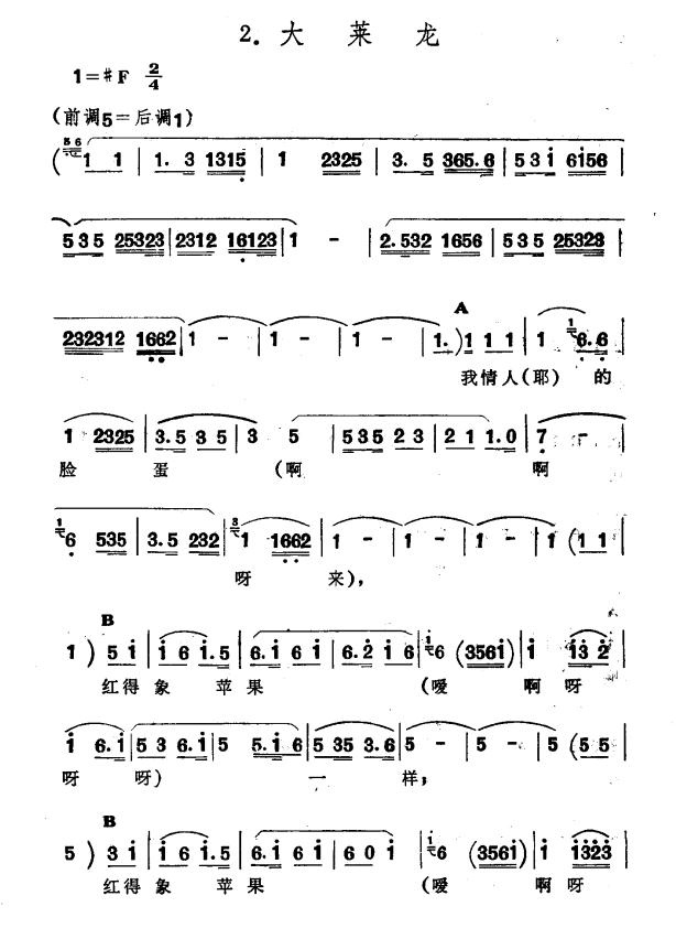 《大莱龙(新疆伊犁 维吾尔民歌 第十二套《小莱龙》)》简谱