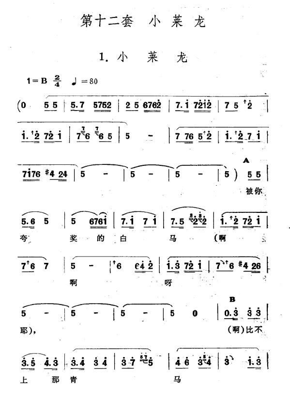 《小莱龙(新疆伊犁 维吾尔民歌 第十二套《小莱龙》)》简谱