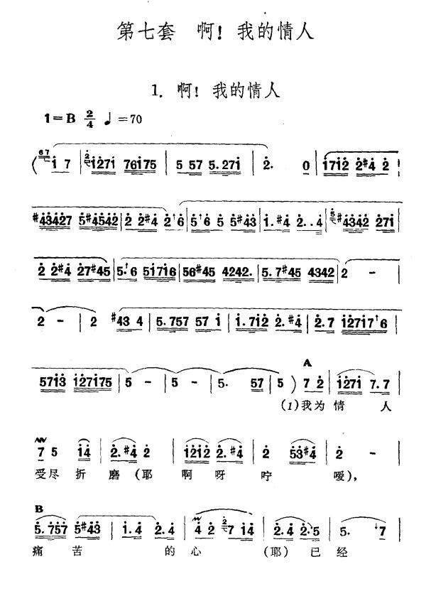 《啊!我的情人(新疆伊犁 维吾尔民歌 第七套《啊!我的情人》)》简谱
