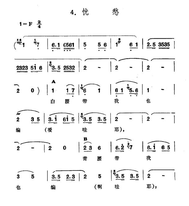 《忧愁(新疆伊犁 维吾尔民歌 第九套《我那戴花的情人》)》简谱