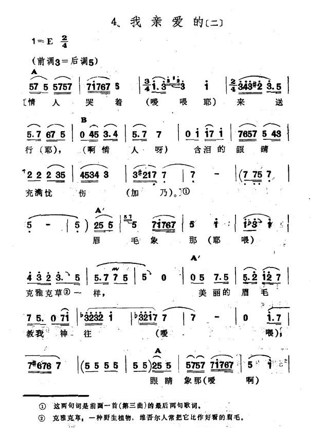 我亲爱的(一)(新疆伊犁 维吾尔民歌 第十一套《我亲爱的》)简谱