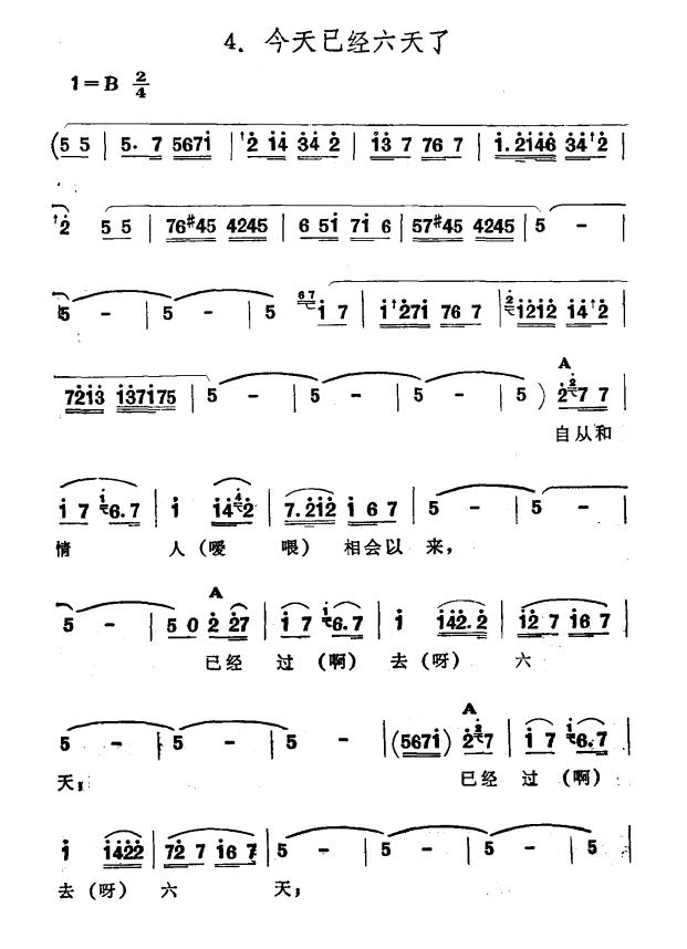 《今天已经六天了(新疆伊犁 维吾尔民歌 第七套《啊!我的情人》)》简谱