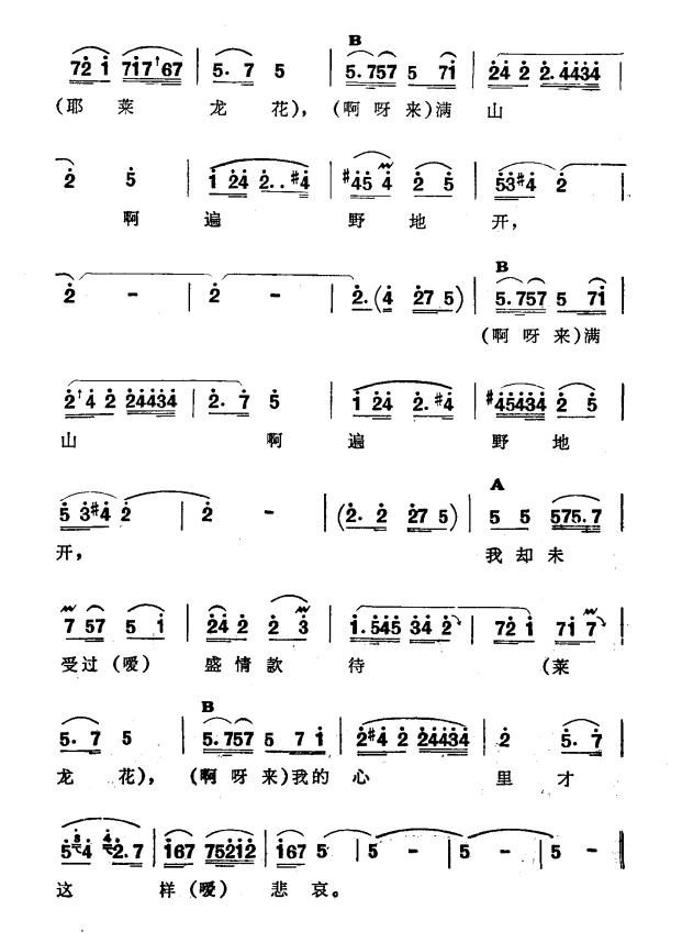 《莱龙花(新疆伊犁 维吾尔民歌 第七套《啊!我的情人》)》简谱