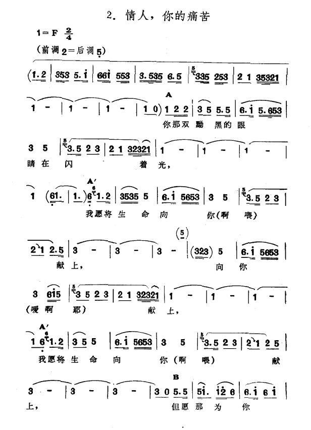 《情人,你的痛苦(新疆伊犁 维吾尔民歌 第六套《痛苦深重》)》简谱