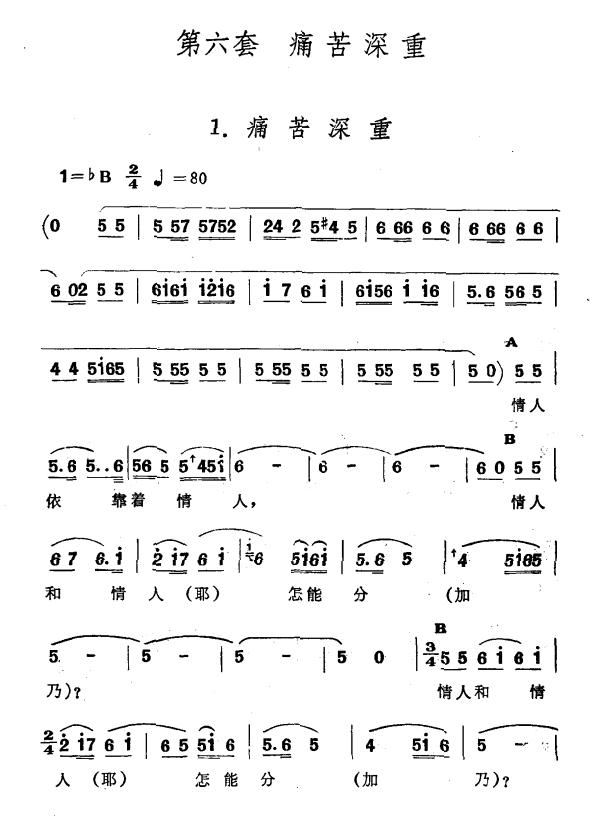 《痛苦深重(新疆伊犁 维吾尔民歌 第六套《痛苦深重》)》简谱