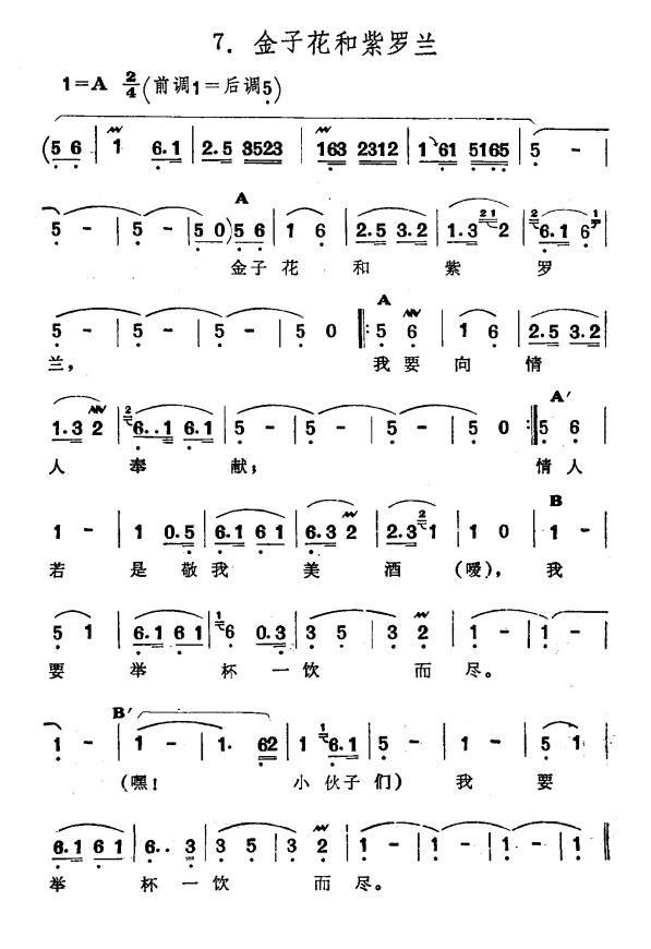 《金子花和紫罗兰(新疆伊犁 维吾尔民歌 第一套《修渠歌》)》简谱