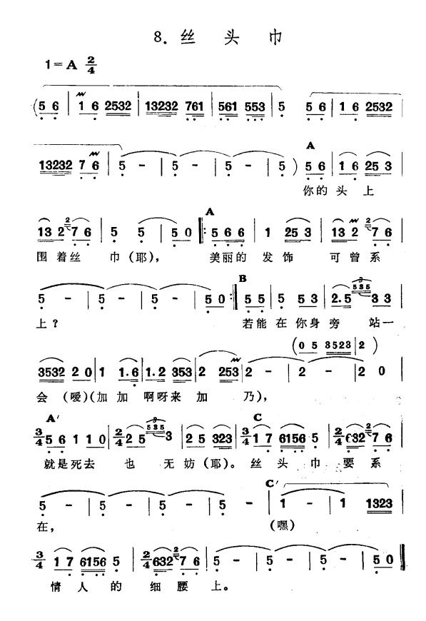 《丝头巾(新疆伊犁 维吾尔民歌 第一套《修渠歌》)》简谱