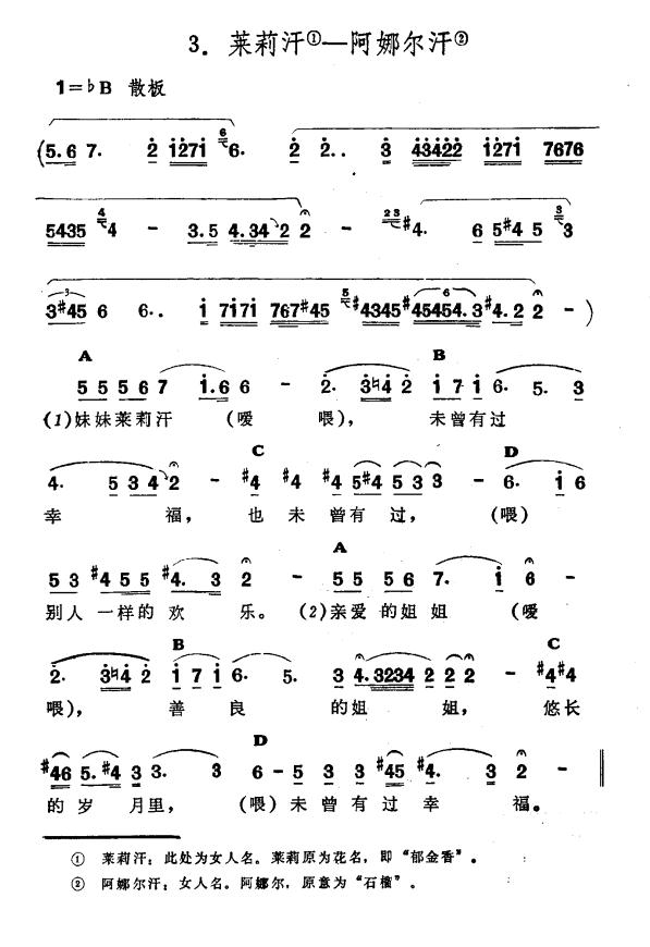 《茉莉汗——阿娜尔汗(新疆伊犁 维吾尔民歌 第三套《收割歌》)》简谱