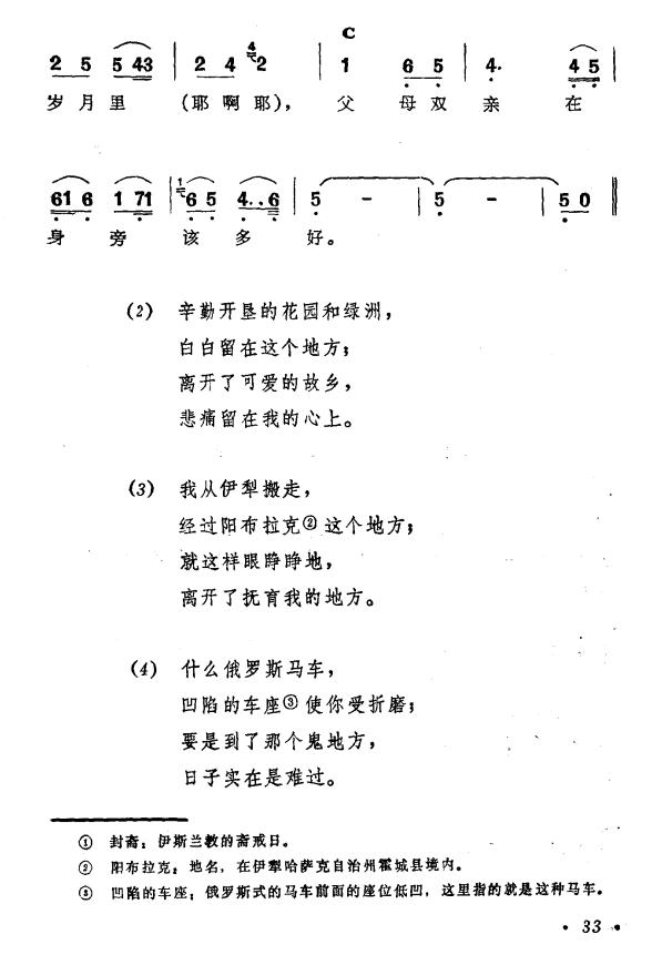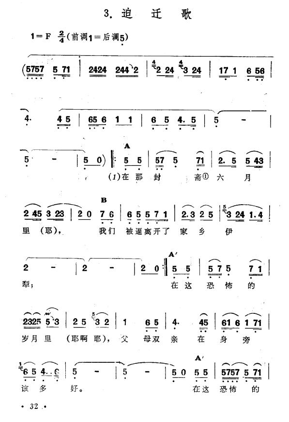 《迫迁歌(新疆伊犁 维吾尔民歌 第二套《古兰木汗》)》简谱