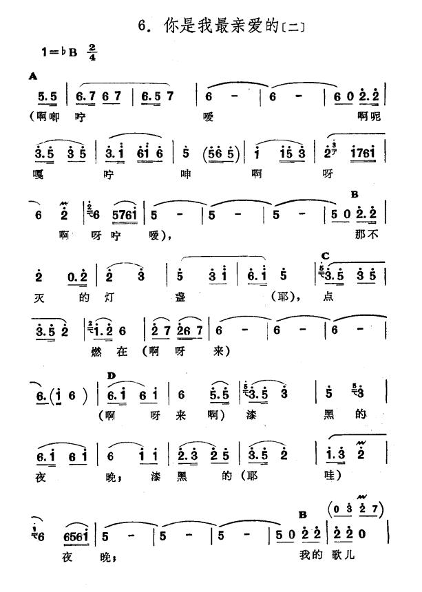 《你是我最亲爱的(二)(新疆伊犁 维吾尔民歌 第四套《街道歌》)》简谱