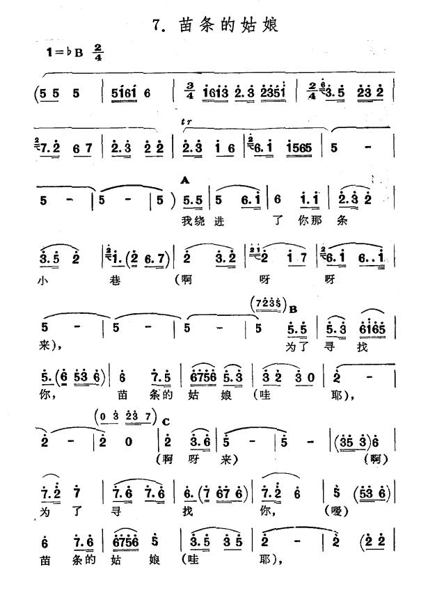 《苗条的姑娘(新疆伊犁 维吾尔民歌 第四套《街道歌》)》简谱