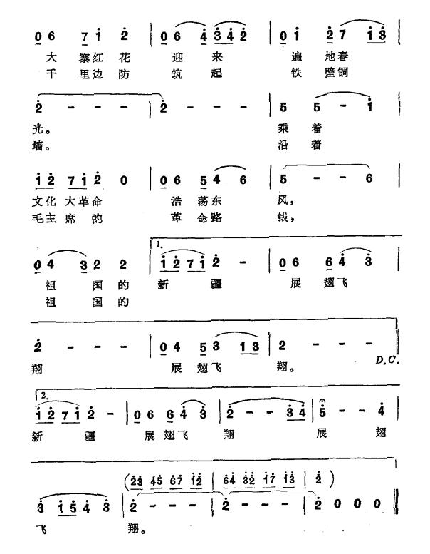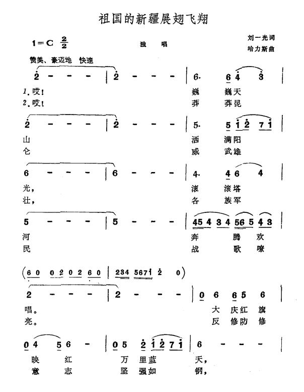 《祖国的新疆展翅飞翔》简谱 哈力斯