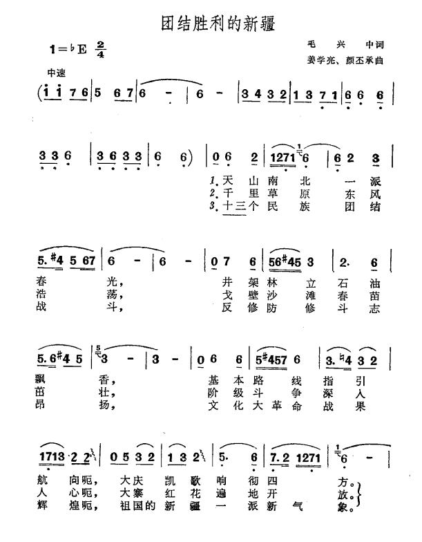 《团结胜利的新疆》简谱 姜学亮 颜丕承