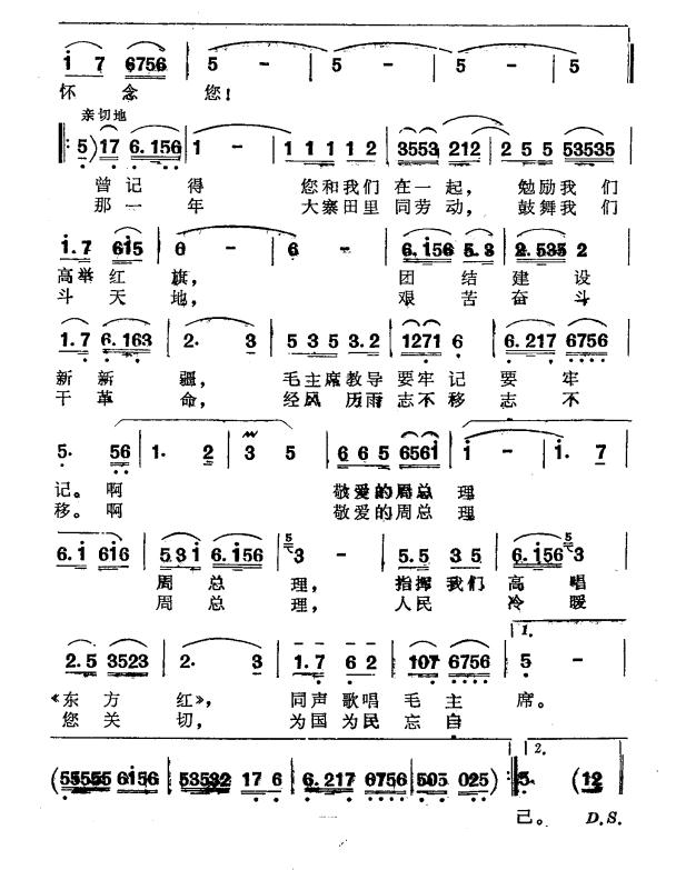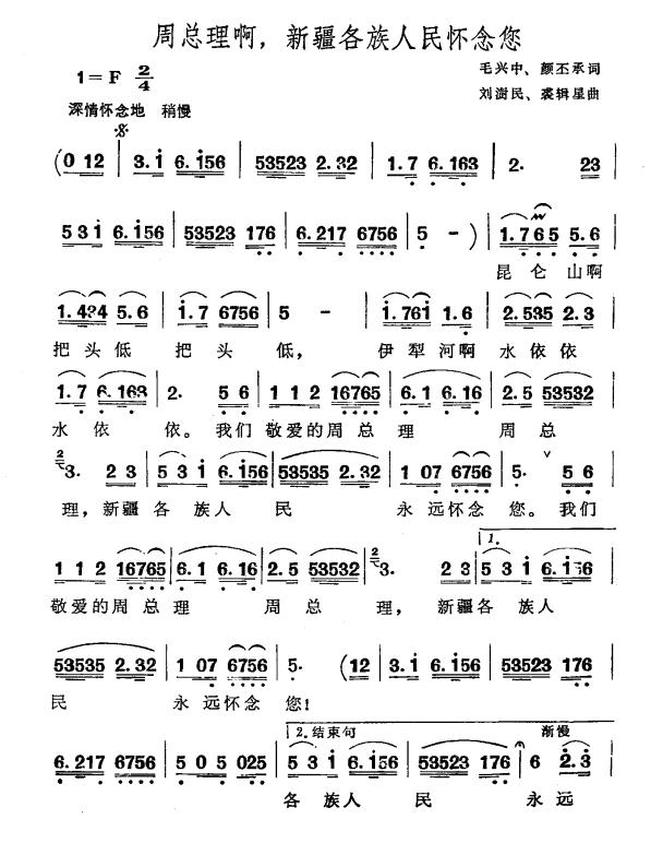 《周总理啊,新疆各族人民怀念您》简谱 刘澍民 裘辑星