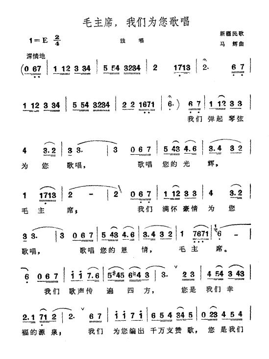 《毛主席,我们为您歌唱(新疆民歌)》简谱 马辉
