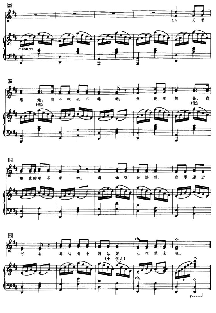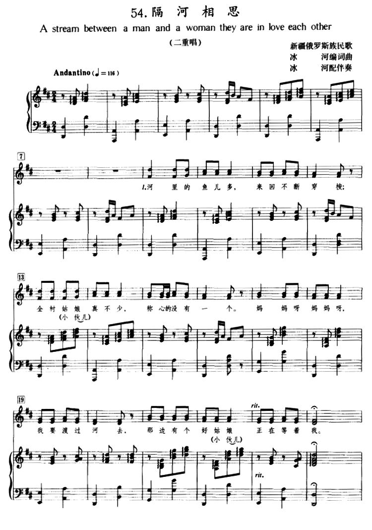 《隔河相思(正谱)》简谱 新疆俄罗斯族民歌、冰河编词曲配伴奏