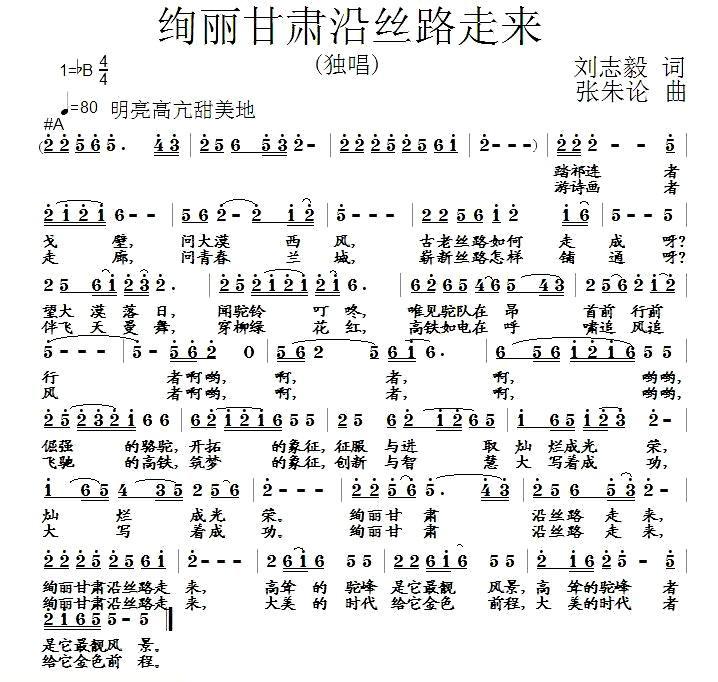 《绚丽甘肃沿丝路走来》简谱 张朱论