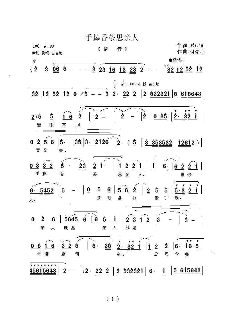 《手捧香茶思亲人(四川清音)》简谱 付先明