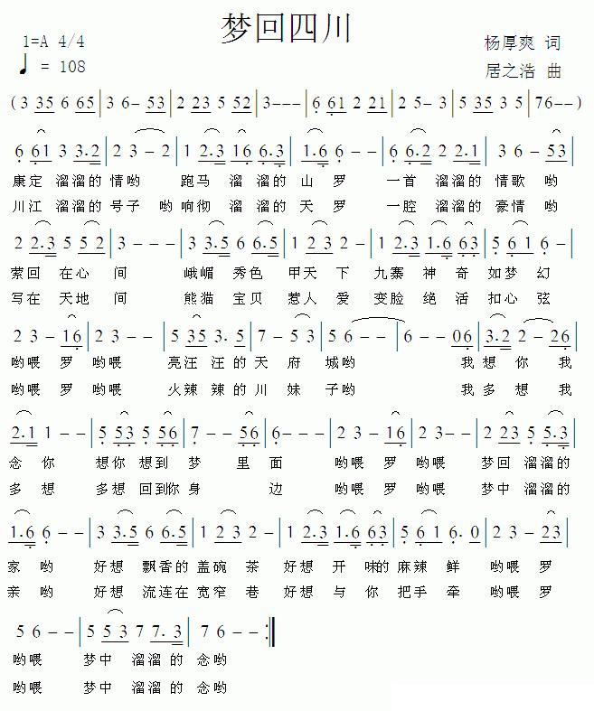 《梦回四川(杨厚爽词 居之浩曲)》简谱