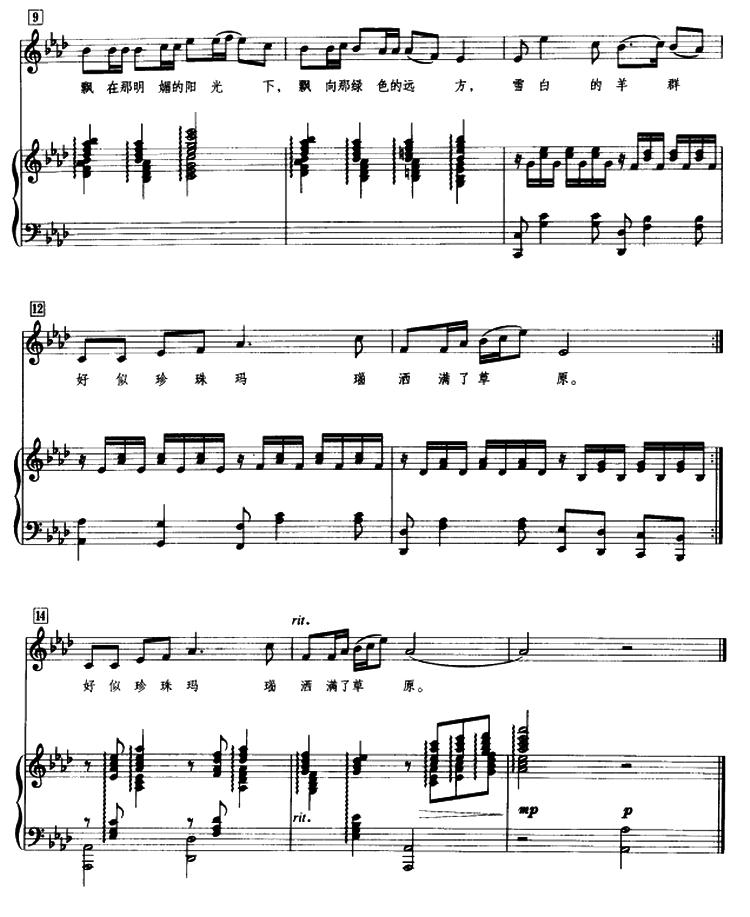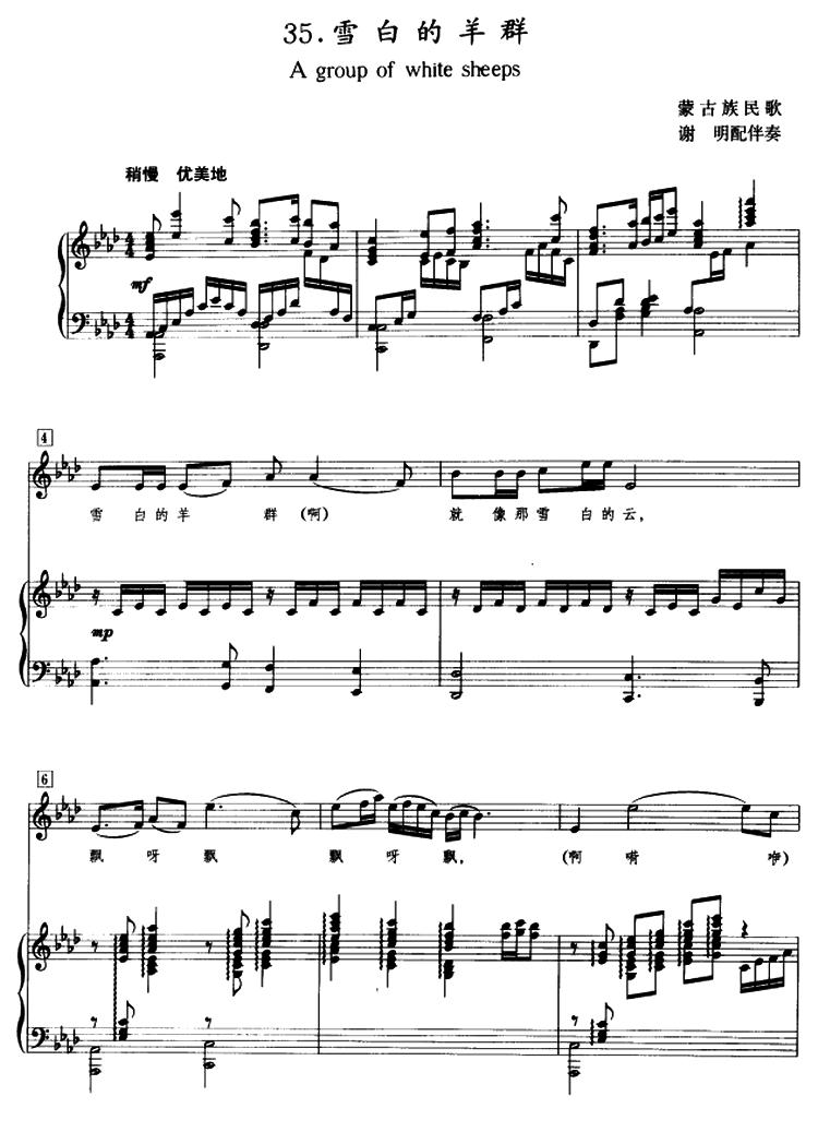 《雪白的羊群(正谱)》简谱 蒙古族民歌 谢明配伴奏