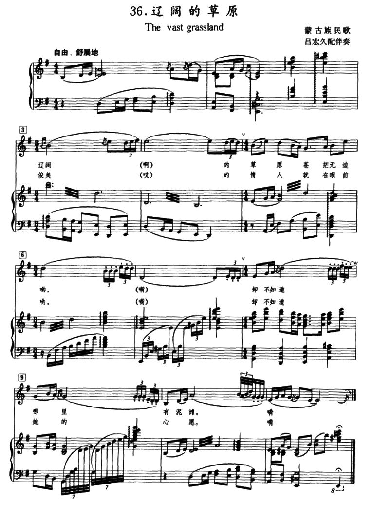 《辽阔的草原 (正谱)》简谱 蒙古族民歌 吕宏久配伴奏