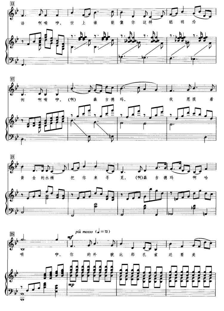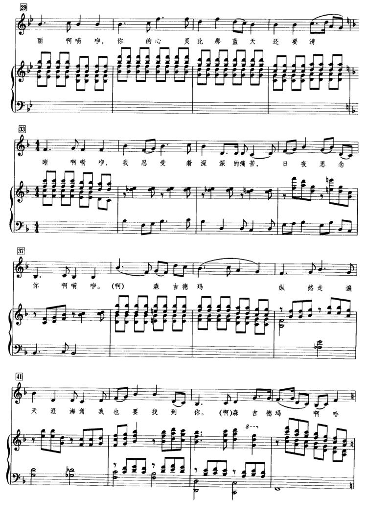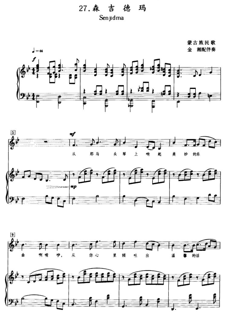 《森吉德玛(正谱)》简谱 蒙古族民歌 金湘配伴奏