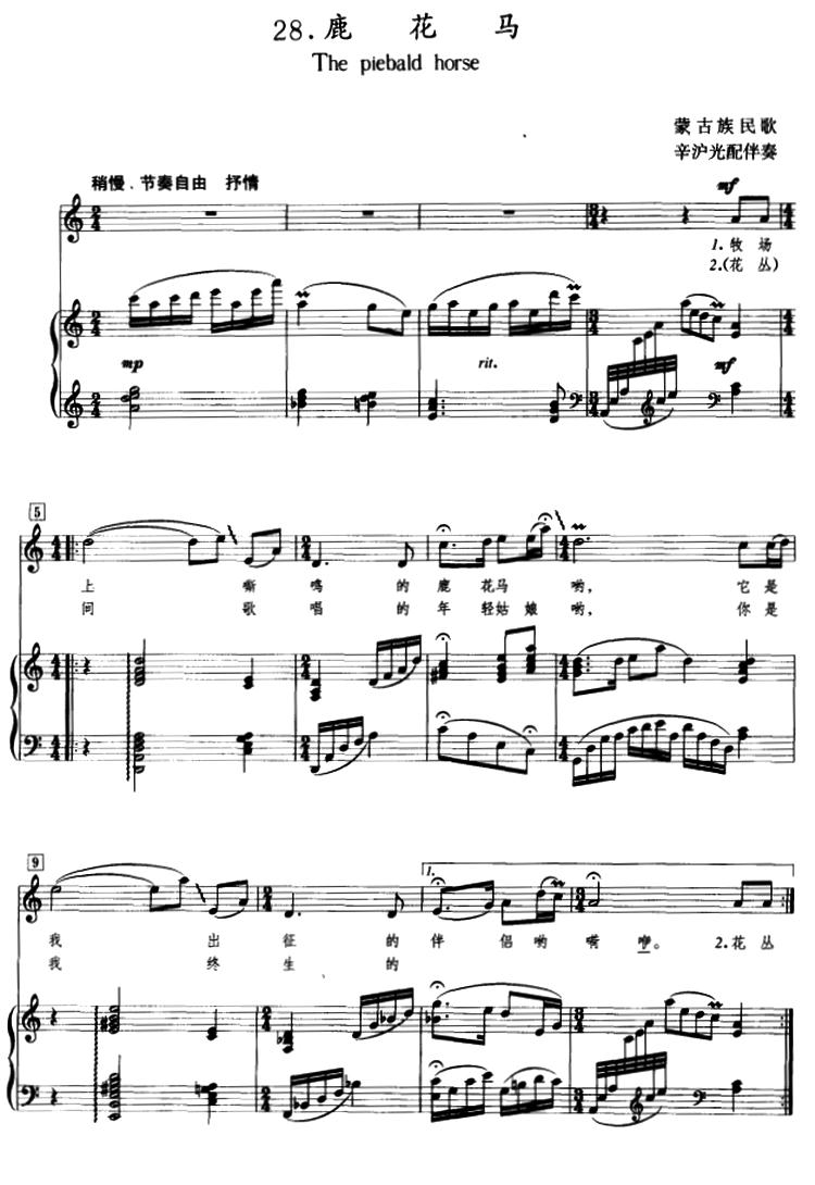 《鹿花马(正谱)》简谱 蒙古族民歌 辛沪光配伴奏